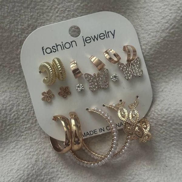 پک گوشواره 9 تایی مدل مروارید آویز صدف طلایی